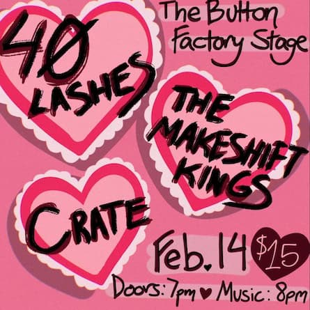 40 Lashes will be joined by Crate and Makeshift Kings, rounding out a full night of local alternative rock at The Button Factory Stage.