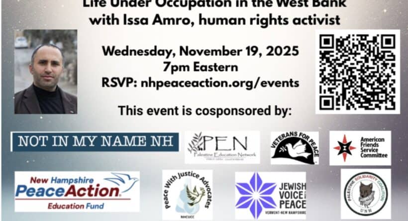 Please use this link to register: Tickets – NIMN and NH Peace Action are very excited to host a renown peace activist and tireless human rights advocate who will join us via Zoom on November 19th – 7pm on Zoom.