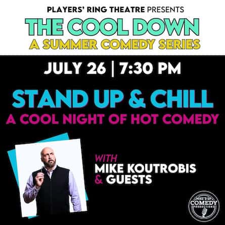 The Cool Down continues at The Players’ Ring this weekend with Stand-Up & Chill, a night of stand-up comedy in Portsmouth. Presented with Mike’d Up Comedy Productions, the event features headliner Michael Koutrobis with a lineup of talented local comics on Saturday at 7:30 p.m. Tickets are $20-$22. Learn more here.